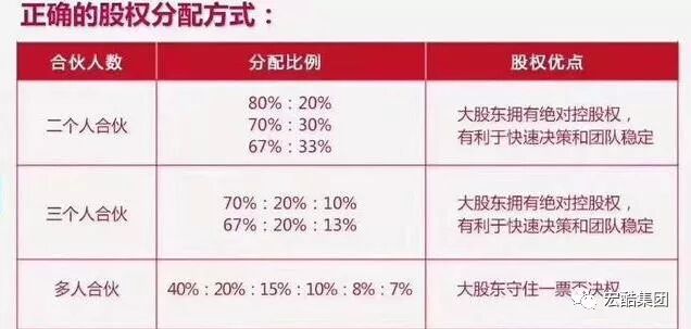 分出去的48%,又当如何分配呢?比如,19%用于总公司的核心高管,9%用于子公司,20%用于投资机构。但这48%不是一下子分完的,有的可能到了公司准备上市的时候才给,在没上市之前可以用48%的注册股加上部分在职分红股。换句话说,老板只要30%,剩下的70%拿去分配,但老板持有52%的表决权。这种组合方式非常恰当。